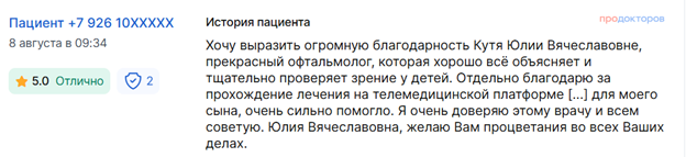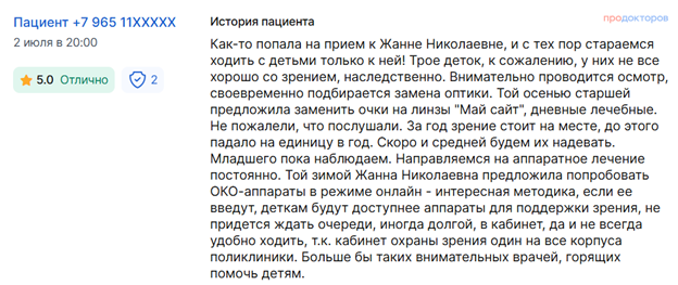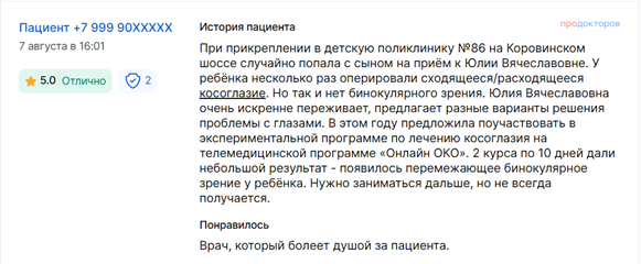 Телемедицинская платформа «ОНЛАЙН ОКО» дает возможность получить второе мнение офтальмолога при наличии результатов очного осмотра Вашего ребенка. Врач на платформе «ОНЛАЙН ОКО» может провести дистанционную диагностику остроты зрения и бинокулярного зрения, а также рекомендовать лечебные процедуры, которые можно пройти, не выходя из дома.